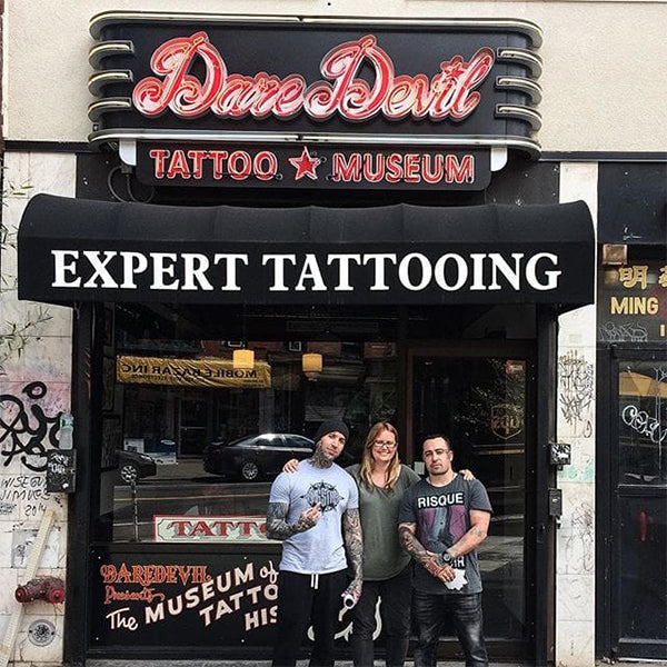 Located in New York City Daredevil Tattoo opened in 1997 when tattooing was legalised in NYC. They work with several artists, all skilled in a variety of unique tattoo styles. Daredevil Tattoo also boasts it's own Tattoo History of NYC Museum collection.